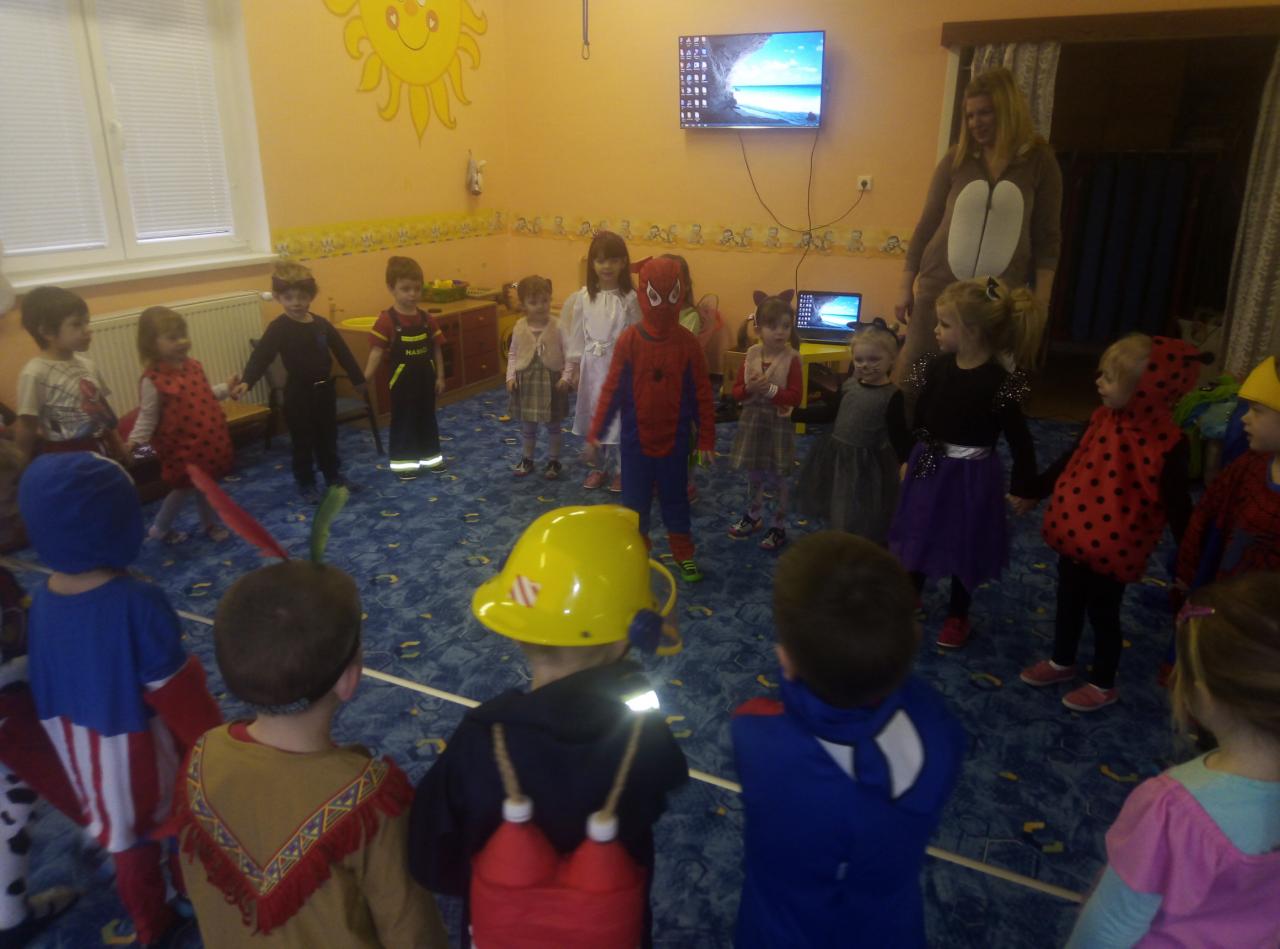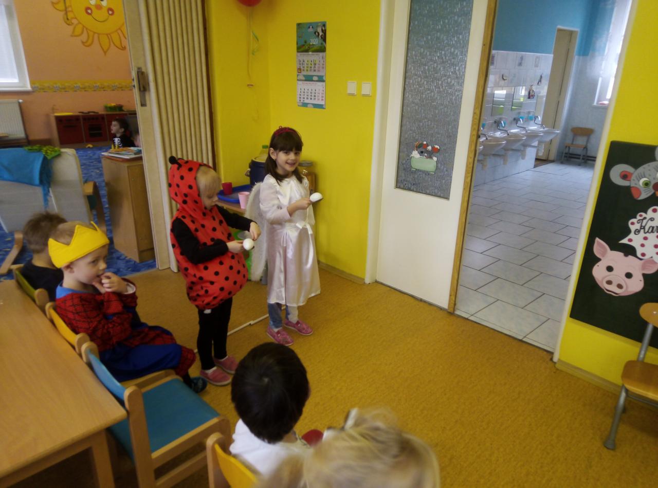V pondělí 24.února jsme oslavili se Sluníčky karnevalový den. Nechyběla promenáda v maskách, přípitek, soutěže a skvělé občerstvení. Také jsme si zařádili u doskotéky. myslím si že se nám ten den velice vydařil adětem se líbil.