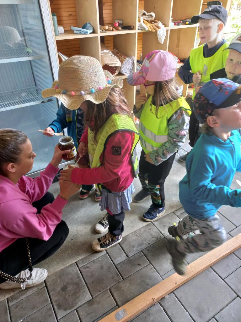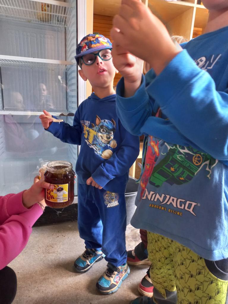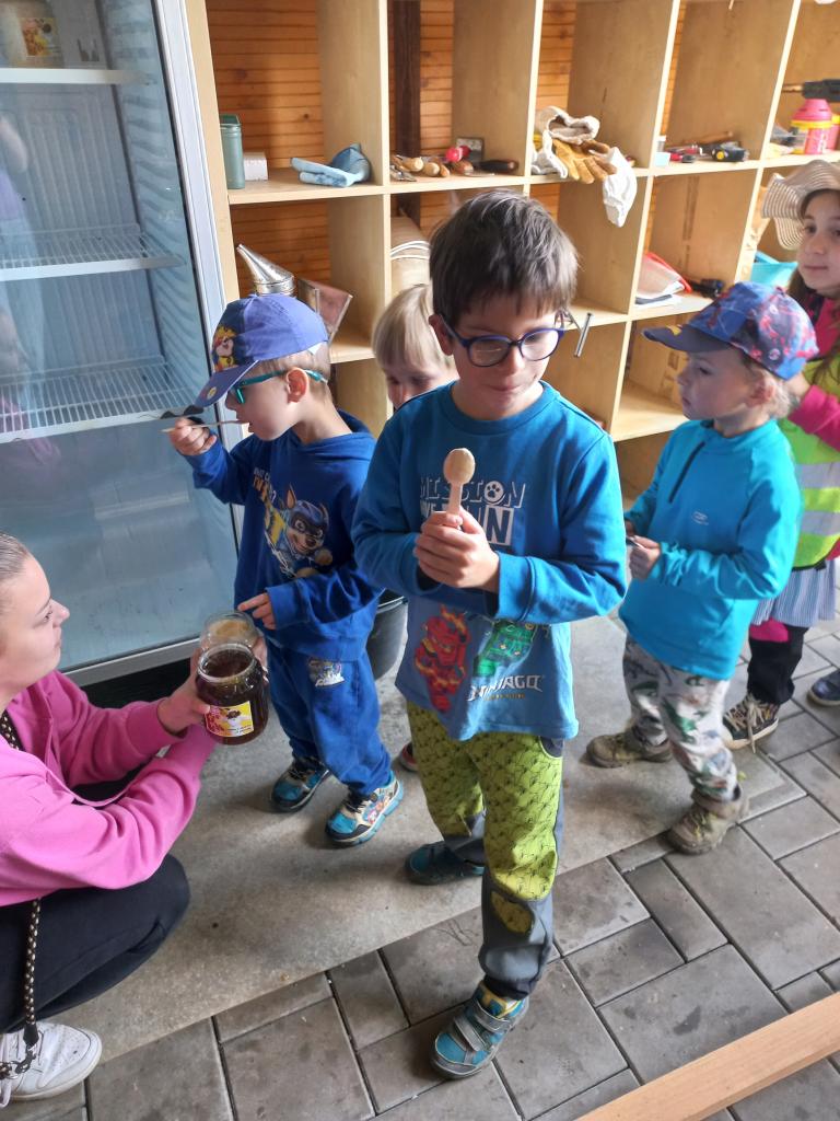 V rámci Dne včel jsme se s dětmi vydali na návštěvu k místnímu včelaři, který nás přivítal u svého úlu . Děti se dozvěděly, jak včelky staví plástve a jak se vyrábí med. Měly také možnost zblízka si prohlédnout úl, včelařské pomůcky a nakonec ochutnat dva různé druhy medu. Všichni si pochutnali!