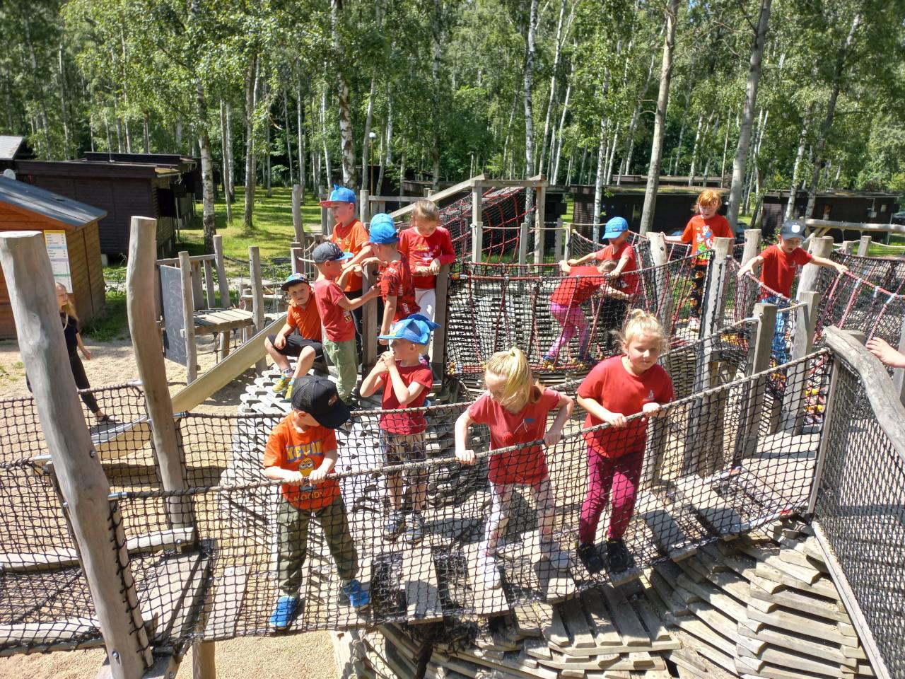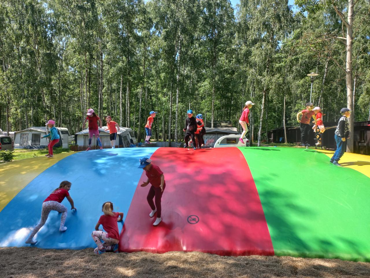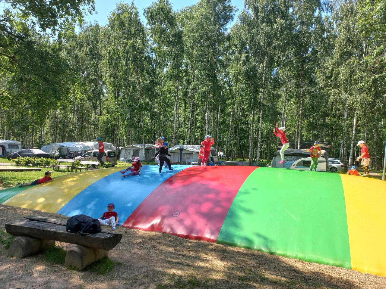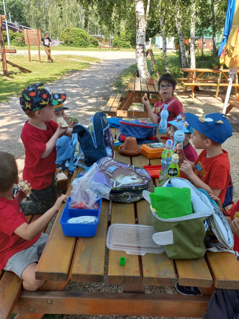 Po této pohádkové části výletu jsme opět nasedli do autobusu, který nás dovezl do rekreačního areálu Kristýna. Tam si děti užily spoustu volného pohybu – skákaly na trampolínách, prolézaly herními prvky a se staršími dětmi jsme se vydali na procházku kolem jezera. Cestou jsme pozorovali zvířátka a užívali si krásného počasí i přírody.