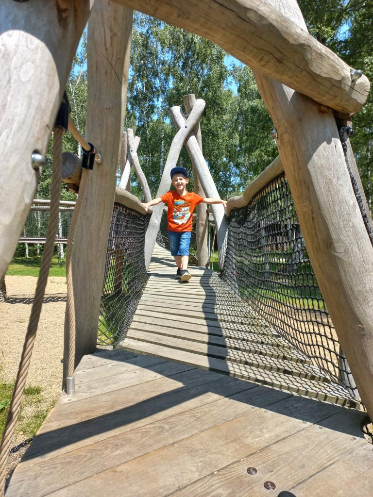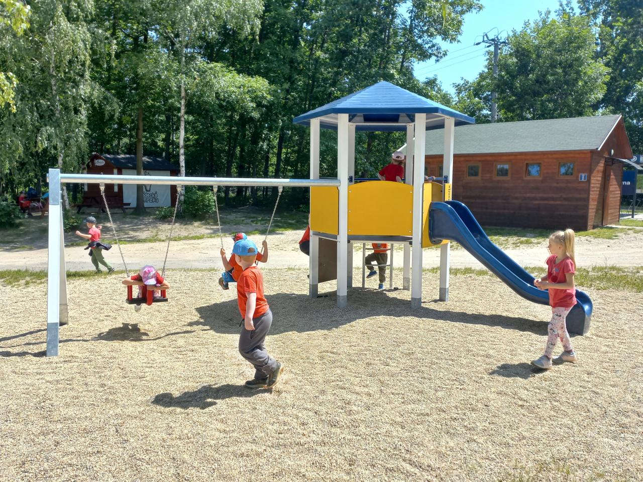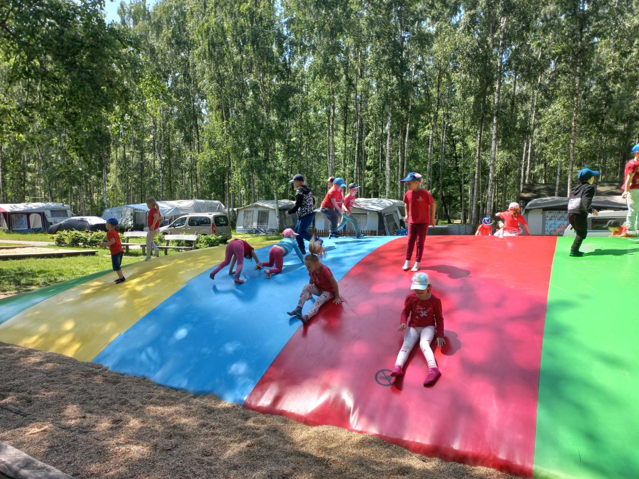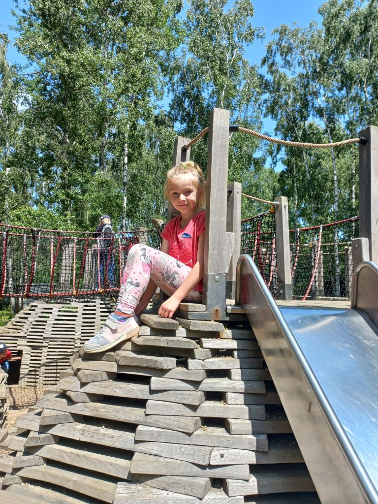 Po této pohádkové části výletu jsme opět nasedli do autobusu, který nás dovezl do rekreačního areálu Kristýna. Tam si děti užily spoustu volného pohybu – skákaly na trampolínách, prolézaly herními prvky a se staršími dětmi jsme se vydali na procházku kolem jezera. Cestou jsme pozorovali zvířátka a užívali si krásného počasí i přírody.