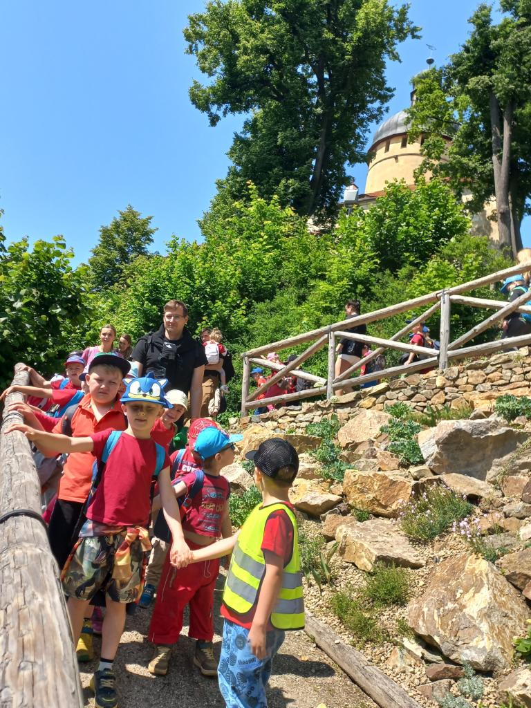 Zažili jsme pohádkový den plný dobrodružství! Navštívili jsme hrad Grabštejn, kde jsme viděli divadélko o dráčkovi Mudrováčkovi a plnili úkoly, abychom zachránili princeznu. Poté jsme se vydali na Kristýnu, kde jsme si užili skákání, prolézačky a procházku kolem jezera.