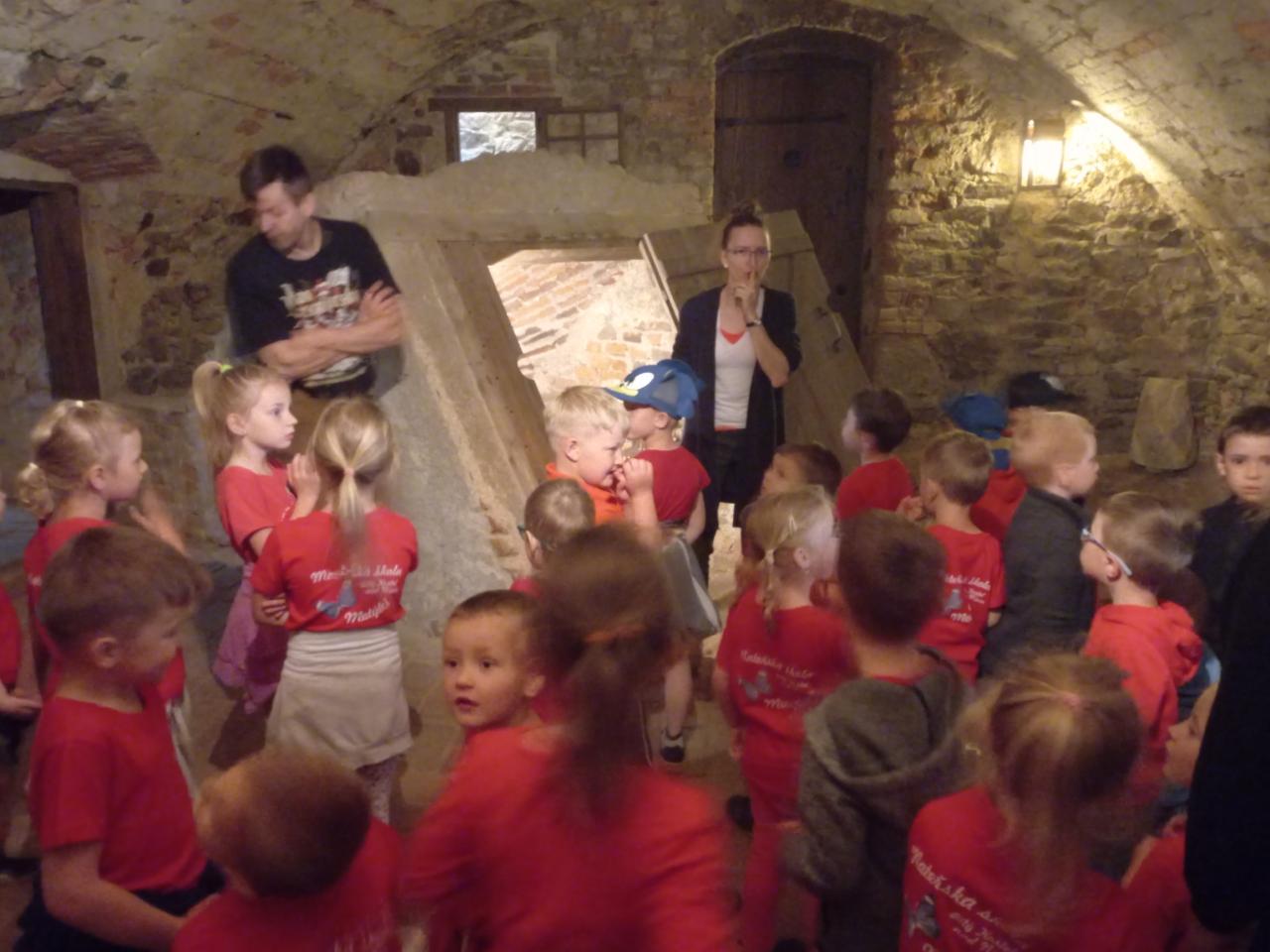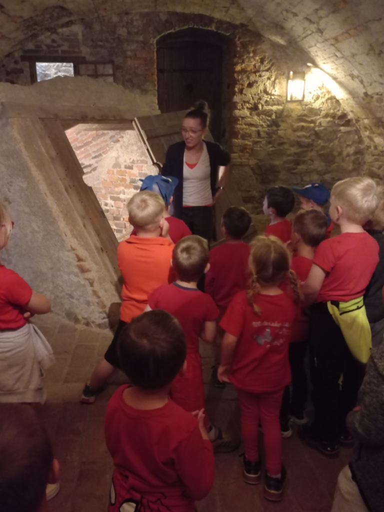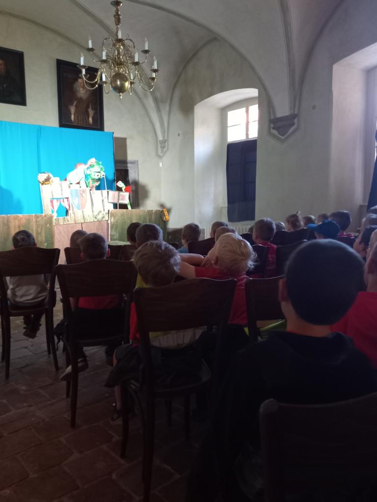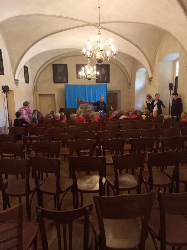 Po představení na nás čekalo napínavé dobrodružství – museli jsme plnit různé úkoly, abychom zachránili zakletou princeznu. Navštívili jsme tajemný hradní sklep, kde podle pověsti žil drak, a vystoupali jsme až do věže, kde nás princezna opravdu čekala! Po jejím vysvobození jsme si všichni odnesli malý zlaťáček jako památku na náš hrdinský čin.