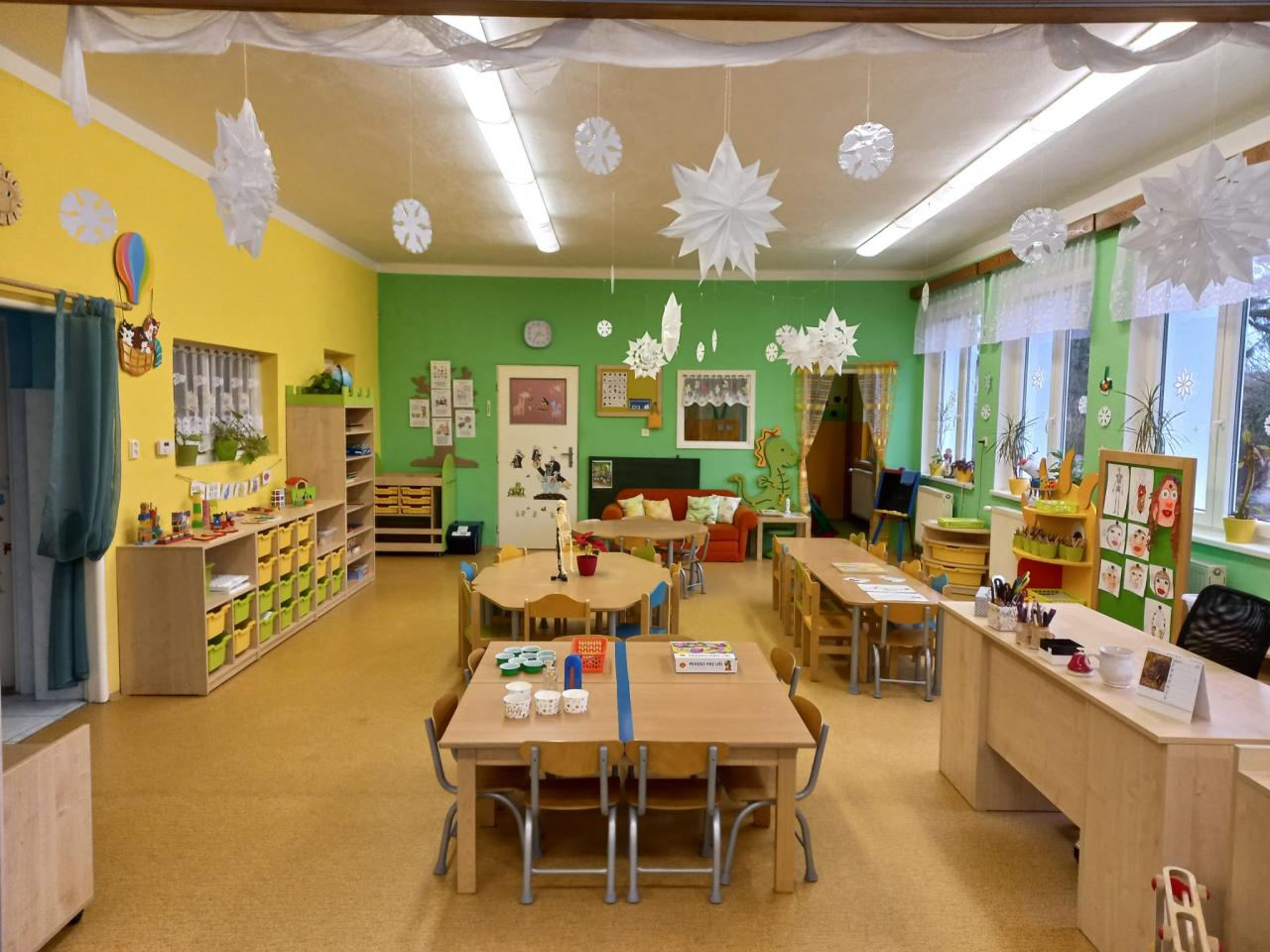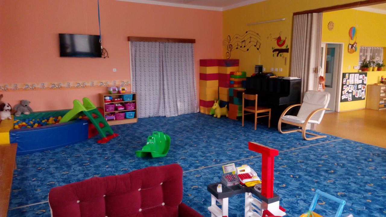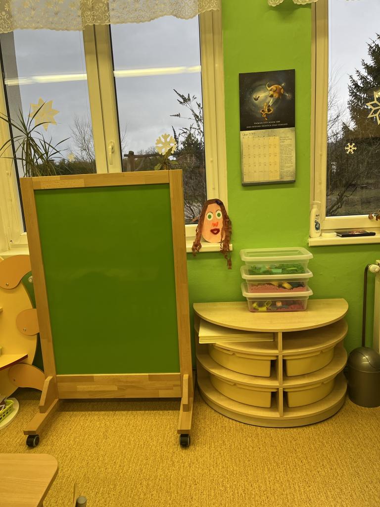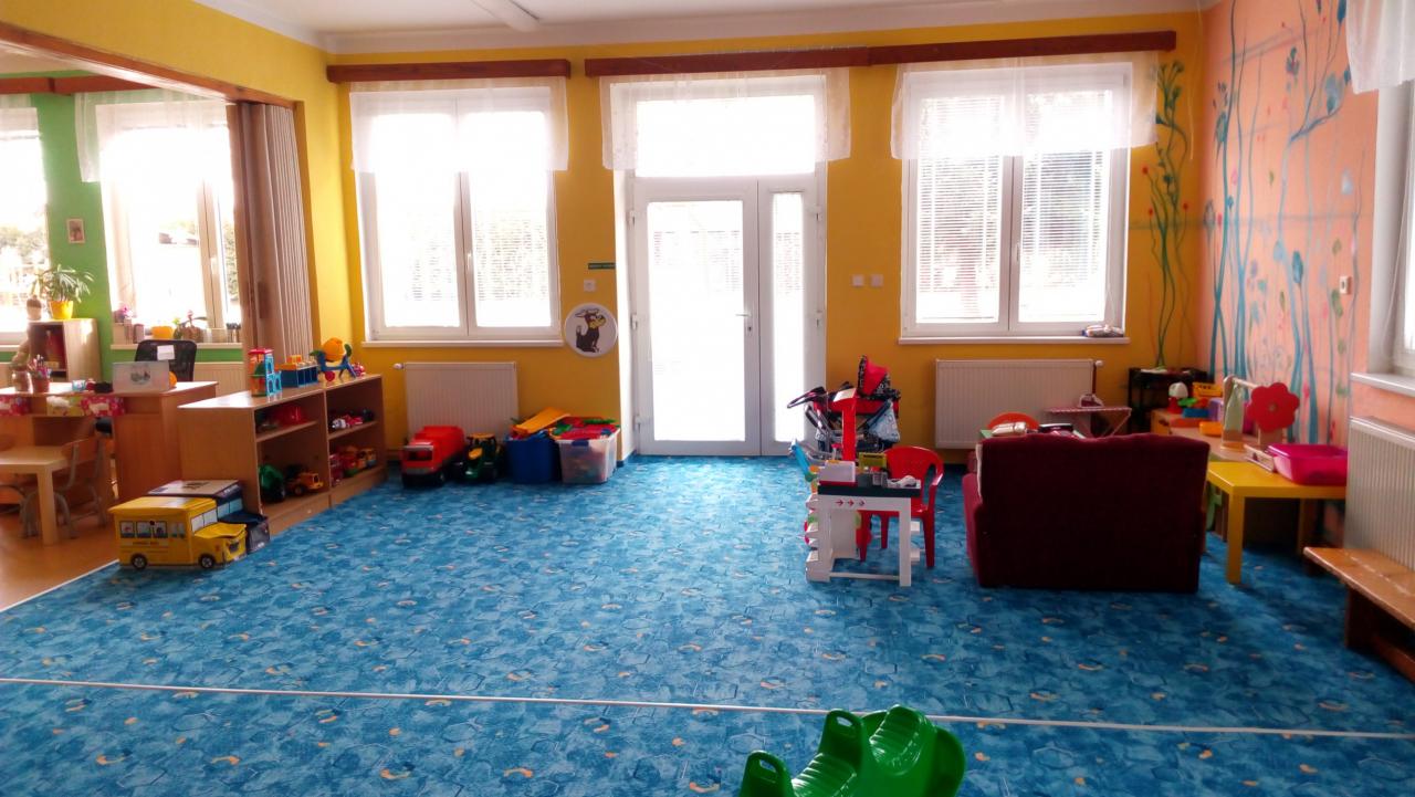 Prostory třídy jsou vybaveny novým, barevným nábytkem s boxy, jenž slouží k uložení různých her, hraček, skládanek a dalších pomůcek.
