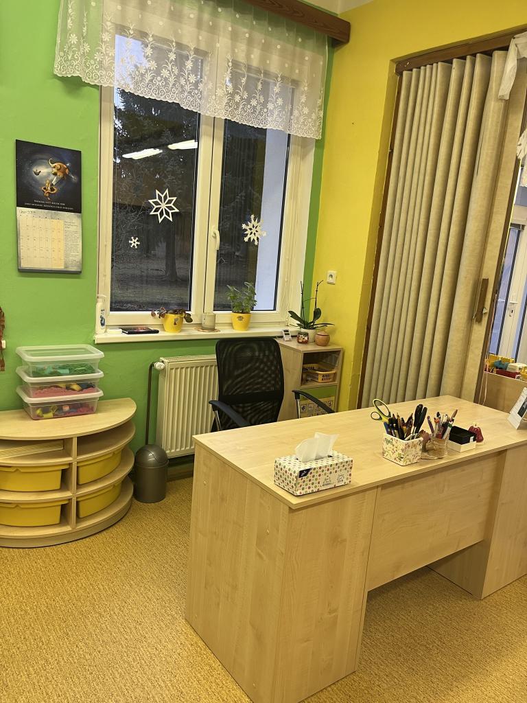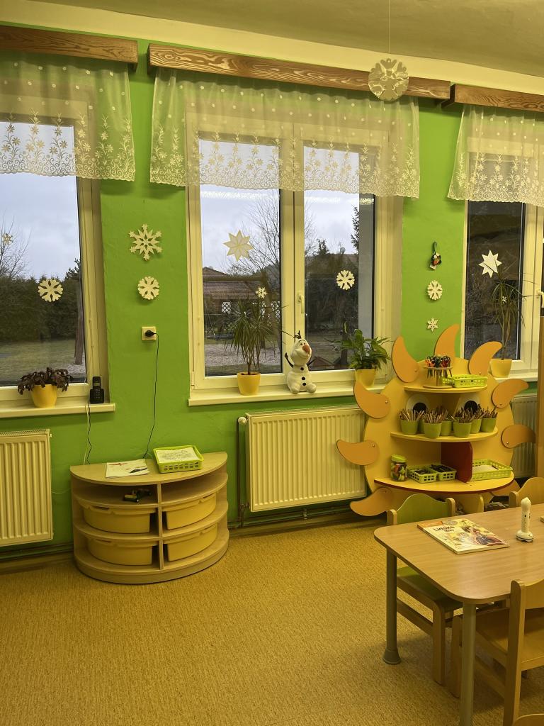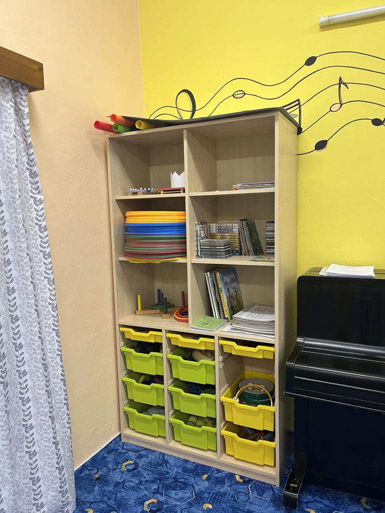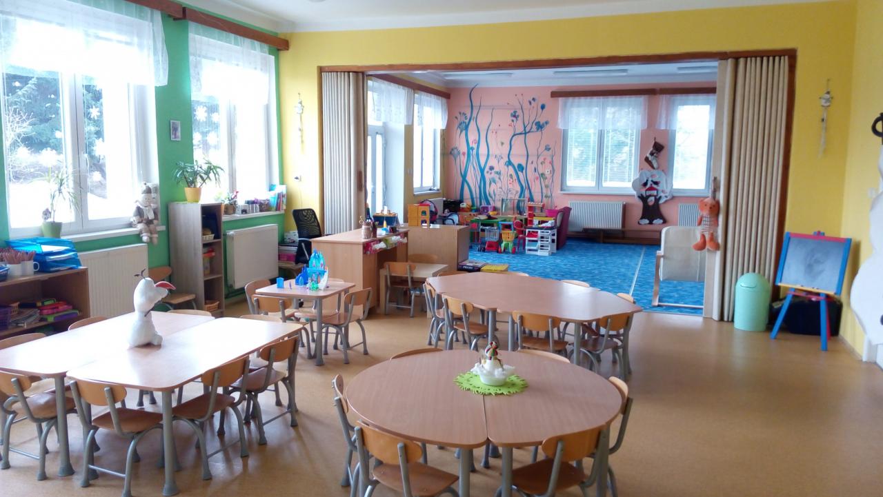 Prostory třídy jsou vybaveny novým, barevným nábytkem s boxy, jenž slouží k uložení různých her, hraček, skládanek a dalších pomůcek.