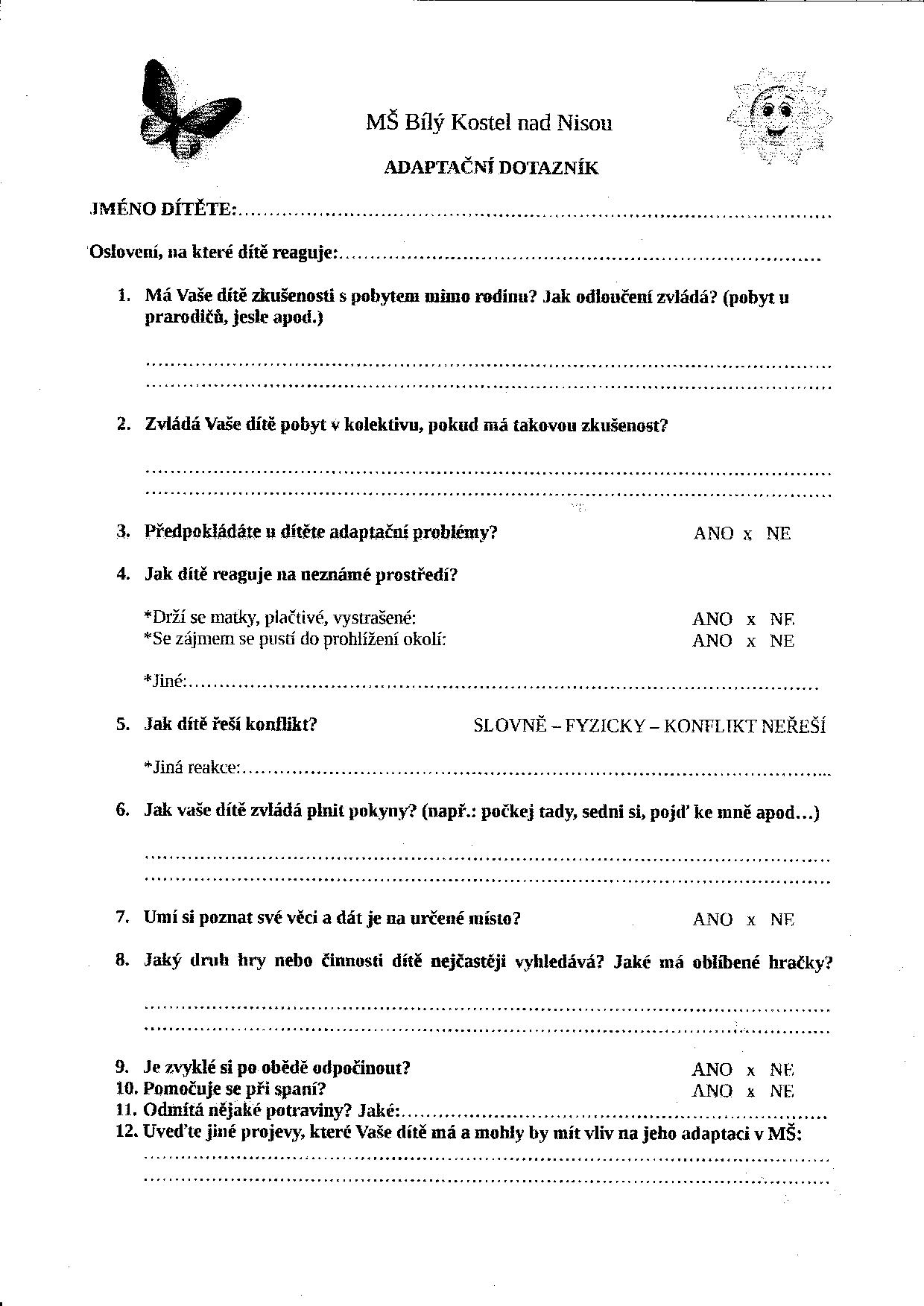 📄 Přihlášku (žádost o přijetí dítěte k předškolnímu vzdělávání) dostanete a vyplníte na místě.